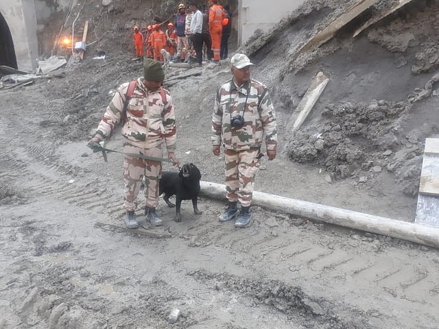 Apart from the combined rescue team comprising Indo-Tibetan Border Police, National Disaster Response Force, Indian Army, Indian Reserve Battalion, State Disaster Response Force, Indian Air Force, Indian Navy, state police department, and others, a total of nine dogs is on duty at the rescue site.
