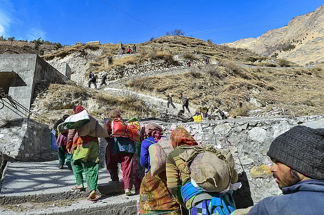 The Indo-Tibetan Border Police (ITBP) personnel are distributing rations and essential items in Suki, Lata and Bhalgaun villages that were cut off due to a flash flood in Dhauli Ganga.