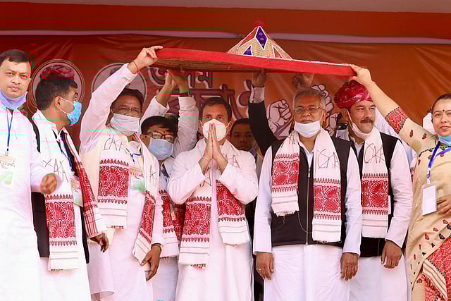 Pointing to the crossed Citizenship (Amendment) Act (CAA) on the Assamese “gamosa” that he and other Congress leaders on the dais were wearing, he said, “No matter what, we will not allow the CAA.”