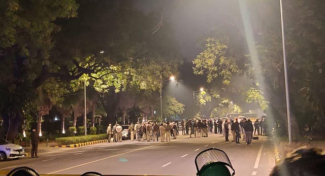 There is a heavy deployment of police personnel and APJ Abdul Kalam Road road has been cordoned off.