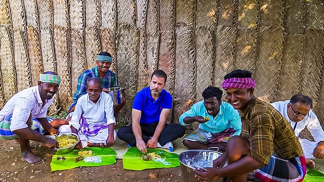During the meal the Congress leader lauded the makers, saying the food was "romba nalla irukku" (it is very nice, in Tamil) even as he is seen enquiring what other delicacies they can cook.