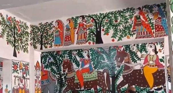 Paintings at the Madhubani railway station. (Youtube screengrab)