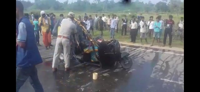 The accident occurred at Baithakhal area on National Highway 8 when the victims were returning from a ghat after performing Chhath Puja, the police said.