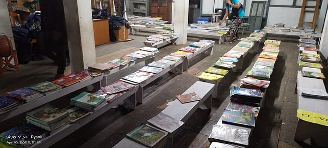 The Bethlehem Vengthlang Presbyterian Church in the state capital of Aizawl stacked books and uniforms, so such children can come and collect them.