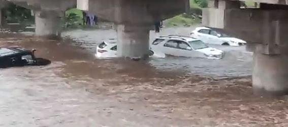 KHARGONE: At least 14 cars were swept away while around 50 people ran for safety to higher places in a forest in Madhya Pradesh's Khargone district due to sudden rise of water in a river after rains, police said on Monday