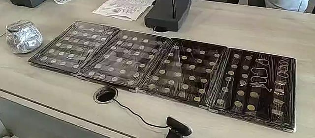 The further probe led the police in unearthing another urn, this time a metallic one, containing 47 more antique gold coins, a piece of gold and old jewellery.