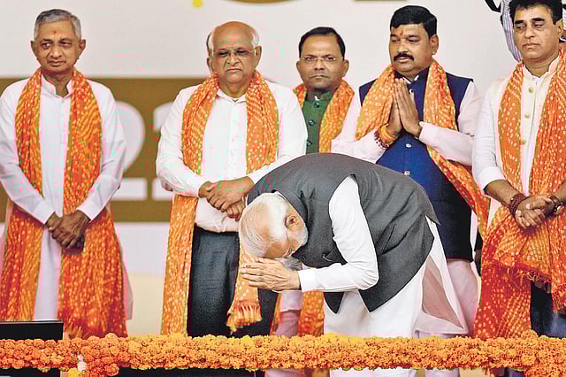 AHMEDABAD: A 17-member Gujarat ministry led by Bhupendra Patel took oath of office and secrecy on Monday in the presence of a galaxy of top BJP leaders, including Prime Minister Narendra Modi. Patel was sworn in as chief minister for the second straight term.