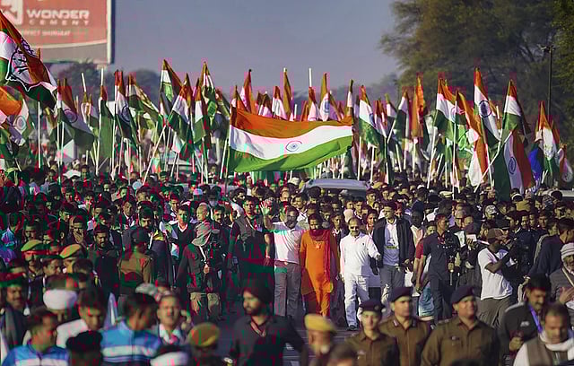 The march on Sunday began with Vedic chanting where Rahul worshipped a decorated tableau of the popular local deity Balaji Maharaj. An interesting incident also came to the fore as a saint was seen walking step by step with Rahul Gandhi in the yatra.