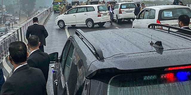 In the viral video, the group can be seen moving close to the black bullet-proof SUV of PM Modi on the opposite carriageway.