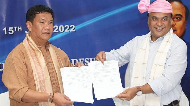 It reads: “This declaration is signed between the states of Assam and Arunachal Pradesh on July 15, 2022 at Namsai, Arunachal Pradesh, to minimize the border dispute between the two states in respect of 123 villages placed before the Local Commission by Arunachal Pradesh…”