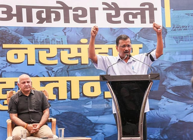 Several AAP leaders, including Delhi Deputy Chief Minister Manish Sisodia, Environment Minister Gopal Rai, Rajya Sabha MP Sanjay Singh and party MLAs, attended the "Jan Aakrosh Rally" and raised anti-BJP slogans.