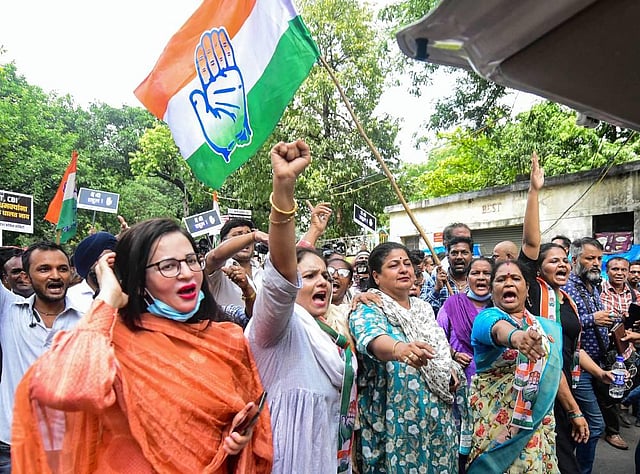 Congress leaders and MPs have been staging demonstrations against their former president Rahul Gandhi's questioning by the Enforcement Directorate in a money-laundering case pertaining to the National Herald newspaper, which they have alleged is "false".