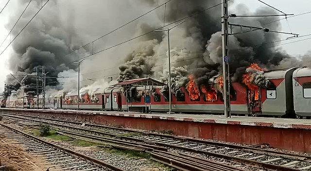 On Thursday, trains were torched in Saran district. Similar protests were staged in Begusarai, Muzaffarpur, Nawada and other districts. The protestors were demanding withdrawal of the scheme launched by the central government for recruitment of Army personnel.