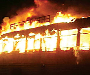 PATNA: A private bus and a truck were set ablaze by protestors in Bihar's Jehanabad district early on Saturday. Both the vehicles were parked on the premises of the Tehata police outpost in Jehanabad district.