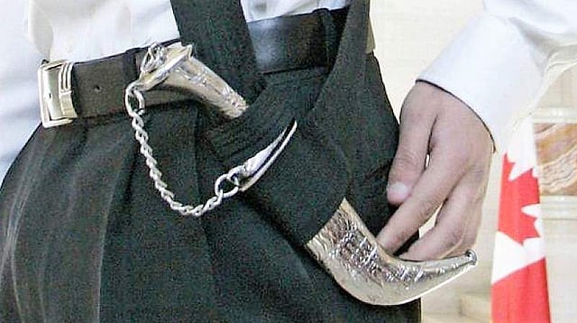 Kirpan, a curved dagger, has to be worn next to the body in the Sikh religion.
