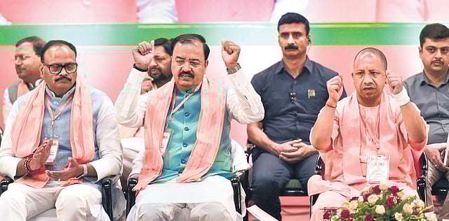 In 2019, the BJP had won 62 Lok Sabha seats in UP while its ally Apna Dal (S) had registered victory on two seats despite a grand alliance of SP and BSP mounting a formidable challenge. “With people’s overwhelming support and our diligence, we got better results in the Assembly polls. In 2024, under the leadership of PM Modi, we have to march ahead with the target of winning 75 seats in Uttar Pradesh,” the CM said.