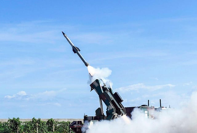 The single-stage solid propelled missile has a mid-course inertial navigation system with a two-way data link and terminal active seeker. Considered to be a unique system in its class, the missile with a strike range of 30 km is expected to supplement the medium-range surface-to-air missile Akash.