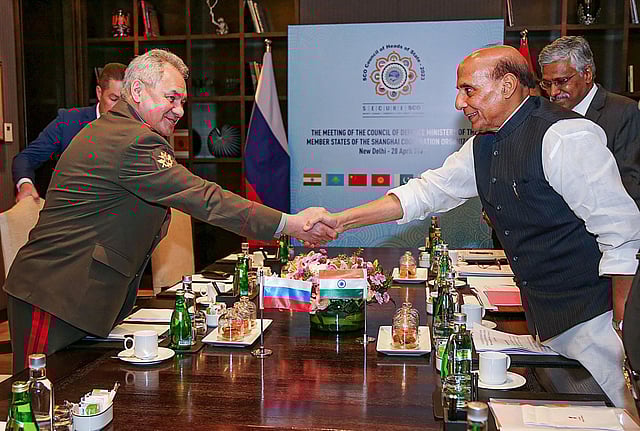 Defence Minister Rajnath Singh held a bilateral meeting with Russian Defence Minister General Sergei Shoigu on the sidelines of the SCO meeting in New Delhi.