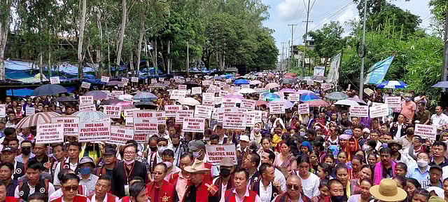 In Ukhrul, the home of the Tangkhul Naga tribe, a rally began at Mission Ground and proceeded for more than 3 km before converging at Mini Secretariat.