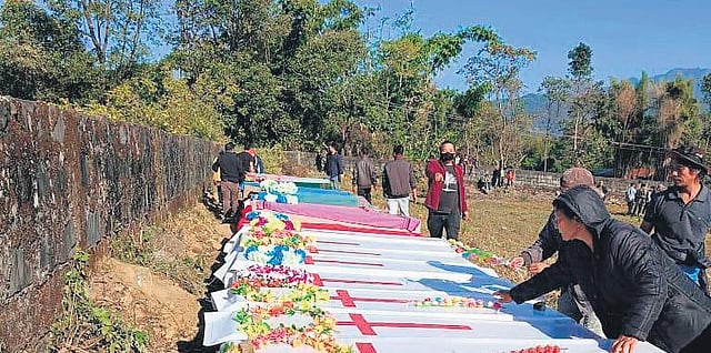 The funeral services for the 19 victims in Kangpokpi will be held on Friday. No date has been finalised yet for the last rites of the 41 others in Churachandpur. Kuki-Zo Organisation Committee on Tribal Unity announced a total shutdown within Sadar Hills-Kangpokpi from 5 am to 5 pm on Friday in view of the funeral services. It sought people’s cooperation toward this end. The shifting of the bodies followed a direction from the Supreme Court. On November 29, it had issued directions to the Manipur government for “decent and dignified burial” of the victims.