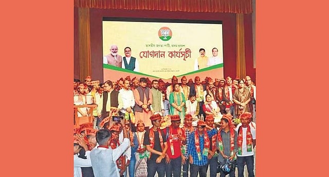 Assam’s ruling BJP received a shot in the arm as over 300 people, including a bevy of former All Assam Students’ Union (AASU) leaders, joined the party. State BJP chief Bhabesh Kalita and Minister Pijush Hazarika welcomed them to the party fold. In the past, several former leaders of the students’ body went on to become chief minister and ministers. “They were influenced by BJP because of its ideology and principles. They were also inspired by the leadership of Prime Minister Narendra Modi and Chief Minister Himanta Biswa Sarma. I appeal to them to work sincerely,” Kalita said.