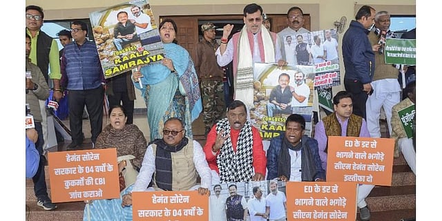 The opposition continued to corner the government from outside the House and staged protests with posters in their hands asking CM Hemant Soren to resign and demanding a CBI inquiry into the misdeeds of the four years of this government.