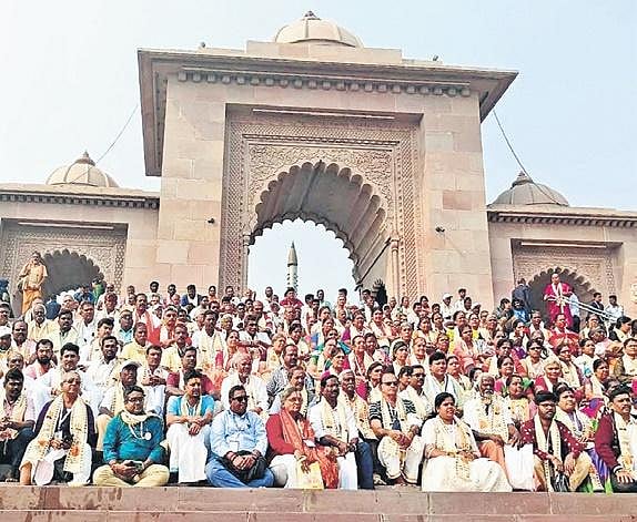 At the entrance, the delegates were welcomed by K Venkat Ramana Ghanapati, the first Tamil trustee of the temple, with flowers amid Vedic chants, they said, adding that they were treated like VIPs. The collector attributed all the hospitality to PM Modi’s instructions given to party cadres and officials last year, ahead of KTS’s launch.