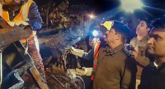 The bus overturned and caught fire after colliding head-on with the dumper on Guna-Aaron road at around 9 pm on Wednesday following which a senior police official said 12 bus passengers were killed and 14 others received injuries.