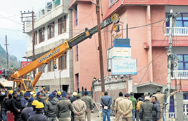 However, the demolition of Mount View was stopped within half an hour due to bad weather. The possibility of rain and snowfall in the next few days could hamper demolition, which is expected to be done within a week. “It will take a week to dismantle the two hotels,” informed District Magistrate Himansh Khurana.