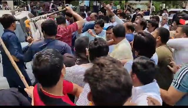 The incident also resulted in the official vehicle of ex-MP minister and local MLA Lakhan Singh Yadav's nephew Sanjay Singh Yadav being damaged.