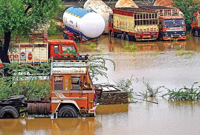 There has been heavy rainfall in Sirohi, with 14 inches of rain in the last 24 hours. Additionally, water levels in 12 dams have exceeded the storage limit, and there has been no electricity for the past 4 days.