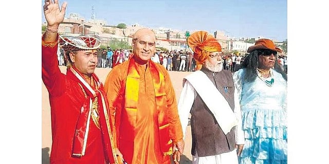 Bikaner’s ‘Faganiya Football’ had an unlikely duo participating this year. ‘Faganiya Football’ match is held every year where people play football dressed up as famous personalities in colourful costumes. The highlight of this year’s match was the lookalikes of PM Narendra Modi and prominent industrialist Gautam Adani who reached the stadium together on a bicycle - the duo were warmly welcomed by people who flocked in thousands for this unique 26-year-old Holi tradition. Other players were seen dressed up as Russian President Putin and Ukraine’s President Zelensky and godman Dhirendra Shastri.