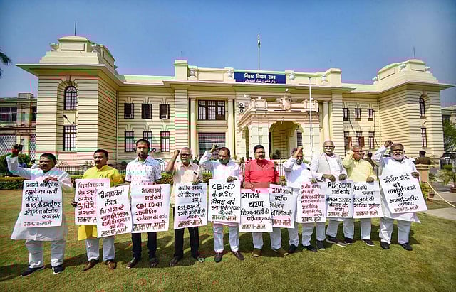 MLAs belonging to Congress and left parties also registered their protest in the House against the questioning of Lalu and his associates in the case. MLAs from CPI (ML) and other left parties carrying placards demanded a check on the ED raids. They also alleged that the raids conducted on the premises of