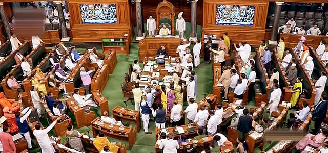 Congress members also trooped in the Well of the Lok Sabha raising slogans but they couldn't be heard clearly in the din.