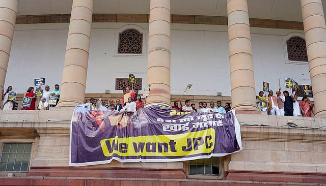 'We want JPC': Opposition leaders protest in Parliament complex over Adani issue