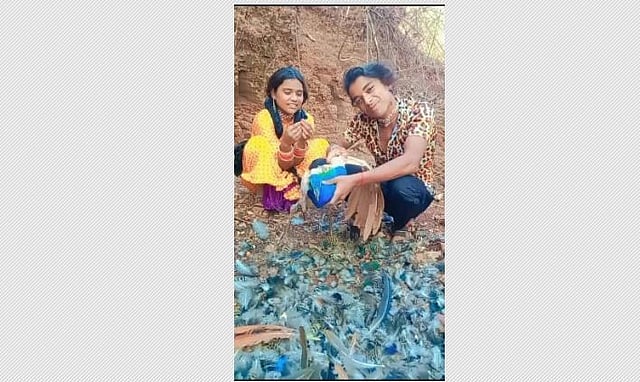 In a set of videos, the youth identified as Atul is seen plucking the feathers of the peacock, while a young girl is seen smiling and seated next to him.