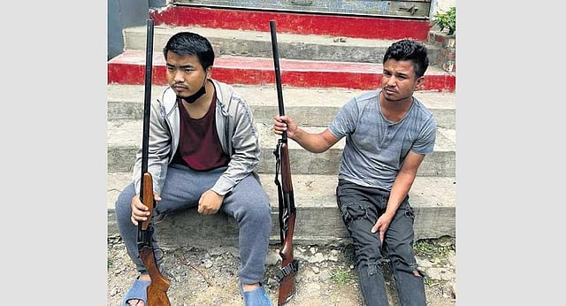 The trouble began when at around 10 am, two persons, one allegedly armed with a single barrel gun, began to threaten roadside vendors, mostly women, to close their shops at the New Checkon area.