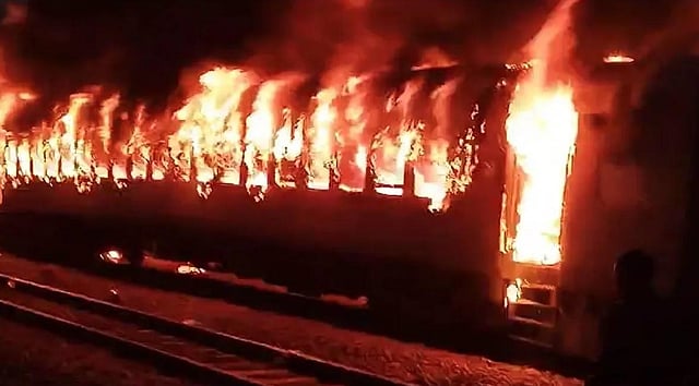 LUCKNOW: In a railway mishap, at least nine passengers including a minor sustained burn injuries following an inferno in three coaches including a parcel and sleeper of Darbhanga Express (02570) while passing through Sarai Bhupat railway station in Etawah district on Wednesday evening.