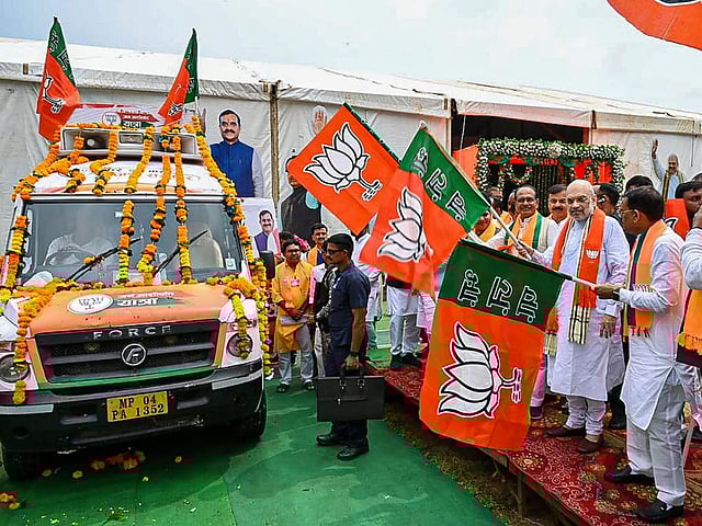 For the fifth time in less than two months, Union Home Minister Amit Shah flagged off on Tuesday the party’s third Jan Ashirwad Yatra from the Mandla district of the tribal-dominated Mahakoshal region. In the afternoon, his visit to the Sheopur district of the Gwalior-Chambal region to flag off the fourth Yatra was cut short by bad weather. He flew to Delhi from Gwalior after addressing a rally over the phone.