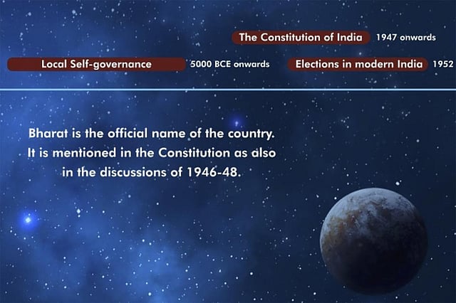 Indeed, India's constitution uses the term Bharat just once: "India, that is Bharat, shall be a Union of States." Everywhere else, the country is referred to as India in English. The name Bharat is an ancient Sanskrit word that many historians believe dates back to early Hindu scriptures.