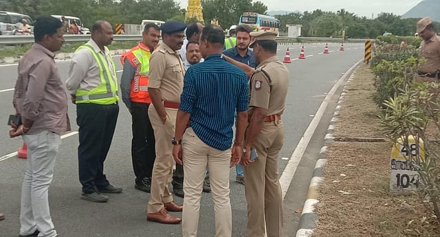 According to police, around 40 people from Pernampet in Vellore district went on a tour to Dharmasthala in Karnataka on September 8. The accident took place early on Monday when they were returning to their hometown in two minibuses. A tyre of one of the minibuses with around 13 passengers went flat stranding the passengers at Natrampalli on the national highway.
