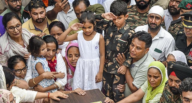 Visuals widely circulated on social media, showed soldiers, shouldering a coffin carrying the mortal remains of the slain Army officer, arriving at his native village for the sombre send-off. Locals gathered in numbers outside his residence to pay their last respects.