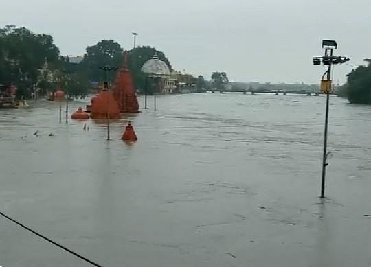 UJJAIN: Several temples situated near Ram Ghat in Madhya Pradesh’s Ujjain district have submerged as the Shipra River is overflowing following the continuous rainfall in the district for the last two days.