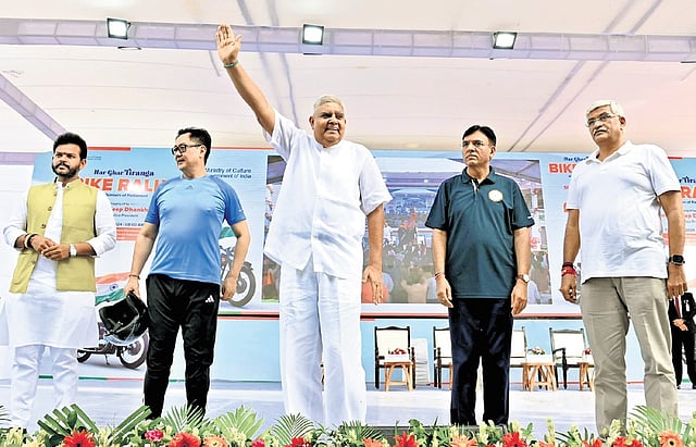 Vice President Jagdeep Dhankhar on Tuesday said that India’s rise is unstoppable and it would be a developed nation by 2047. “We are no longer a nation with a potential or a promise. We are a nation on the rise as never before,” he said while speaking at the Har Ghar Tiranga bike rally, in which members of parliament participated. The event was part of the campaign of the culture ministry being held ahead of the Independence Day celebrations.