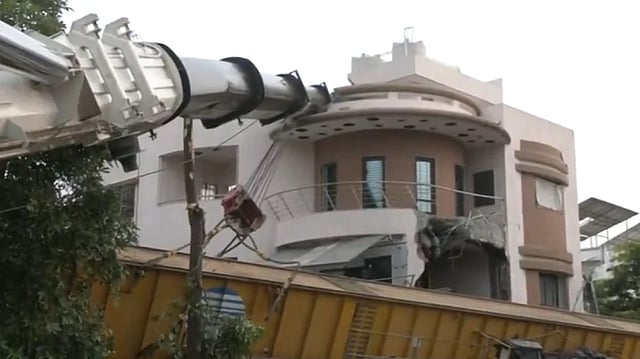 Divisional Fire Officer Hardik Patel said that the team was erecting an object through the crane, and during that, a portion of the crane fell on the building.