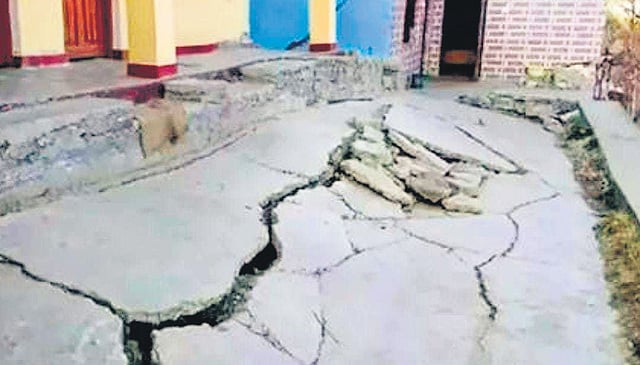 The severe land subsidence has led to the displacement of numerous families. Following a comprehensive survey, the Central Building Research Institute (CBRI) has deemed these buildings completely unsuitable and unsafe for habitation.