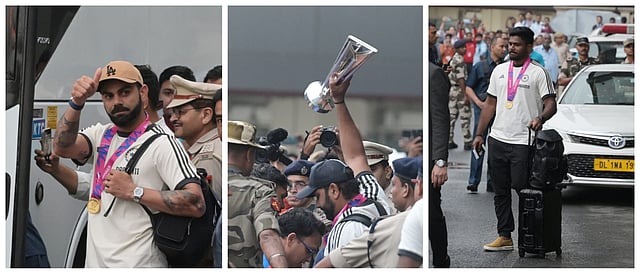 The T20 World Cup-winning Indian cricket team arrived in New Delhi from Barbados on Thursday aboard a specially arranged charter flight with scores of fans lining up outside the airport in the national capital to welcome the players despite a steady drizzle and heavy security deployment that kept them at a distance from their heroes.