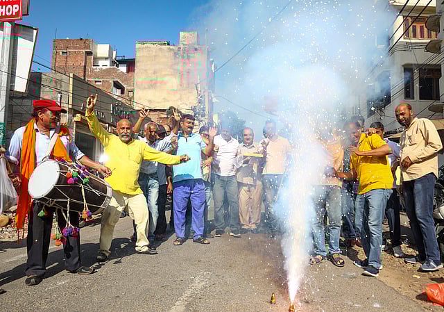 As soon as the results were declared Congress workers erupted in joy, celebrating the party's twin wins with great fervour.