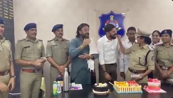 In the footage, DCP Kanan Desai and her police team sing Happy Birthday while BJP leader Himanshu Chauhan is seen cutting the cake.