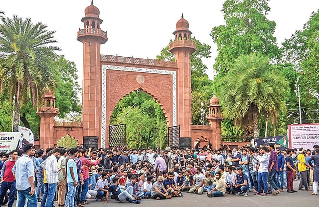 The protesters gathered at Raja Mahendra Pratap chowk in the Civil Lines locality and then marched to the University Circle at the entry point of the campus, raising anti-AMU and religious slogans.
